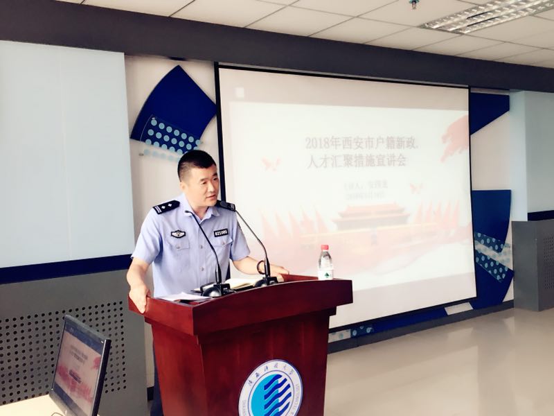 为帮助毕业生深入了解西安市人才政策,助力“百万大学生留西安”计划。5月18日上午,学生就业指导中心、保卫处邀请西安市公安局未央分局和草滩派出所,在四号教学楼C411报告厅举办 “西安市户籍新政人才汇聚措施”政策宣讲会。西安市公安局未央分局户政大队大队长王海玲、草滩派出所主管户籍工作副所长安四龙及派出所相关工作人员,学生就业指导中心、保卫处相关人员,各学院毕业班辅导员及百余名学生代表参加会议。会议由保卫处处长助理刘政主持。